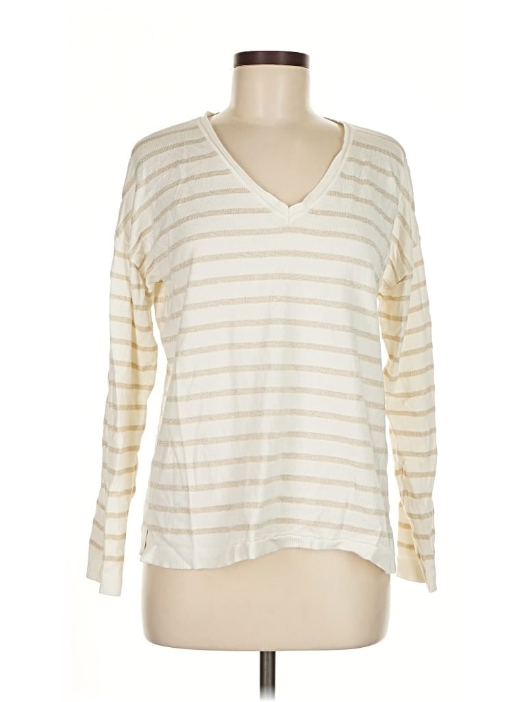 Marled Pullover Sweater, Size: Medium. Item Details: Ivory, V Neck, Long Sleeve, Women's Tops