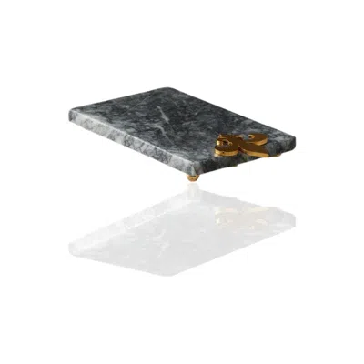 Charming, compact, and undeniably elegant — the Grey Marble Rectangular Serving Board With Gold Bow Detail brings a touch of sophistication to even the smallest servings. Crafted from rich grey-toned marble, this petite board rests on gold-finished spherical feet and is adorned with a delicate gold bow for a playful yet refined finish. Perfect for presenting small bites, individual desserts, or as a stylish base for decorative items, it’s equally suited for personal entertaining or as a thoughtful gift. A balance of luxury and charm in miniature form. Handmade: slight variations in marble veining and finish are natural Wipe clean with a soft, dry or slightly damp cloth Food-safe; ideal for dry or room-temperature items Designed for decorative and light serving use