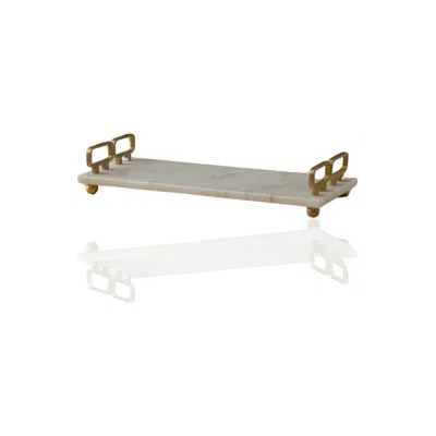 MARLETH Rectangular White Marble Tray With Double Square Gold Handles