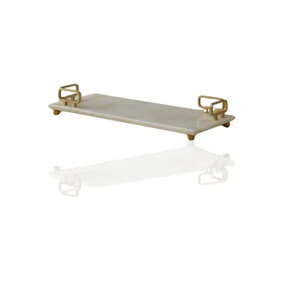 MARLETH Rectangular White Marble Tray With L-shaped Gold Handles
