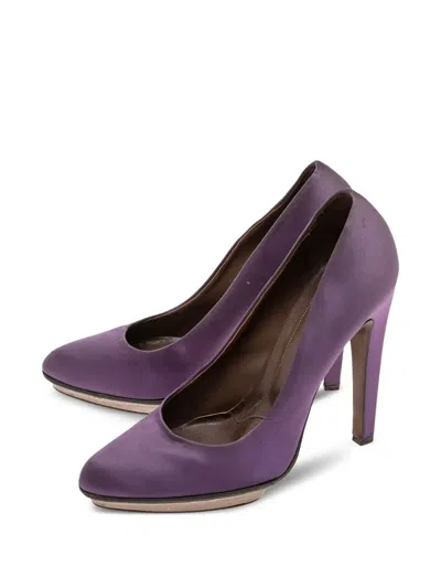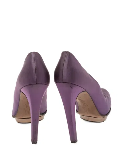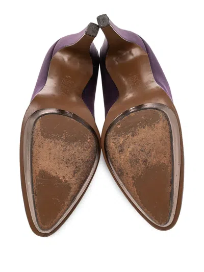 purple satin pointed toe hidden platform high stiletto heel leather insole Condition: GOOD. This previously owned and used item is in good condition with minimal signs of use. This may include fading of material or plating and scratches.
