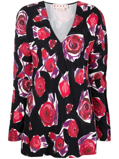 The red and purple roses that cover Marni's top have been drawn by hand, adding texture to the design. It's made from crepe with a deep V-neckline and a slightly fitted waist. Wear yours with the matching skirt.- For Women.