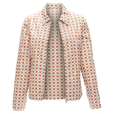 MARNI Checkerboard Colla Zip Shell Jacket In Red