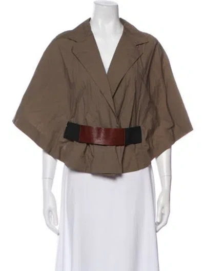 Marni Jacket Brown Colorblock Pattern Leather Trim Embellishment & Pointed Collar Belted Closure Designer Fit: Jackets by Marni typically fit true to size. | Marni Colorblock Pattern Jacket in Brown, Women's US6, IT42 | M