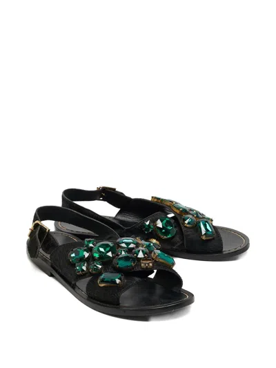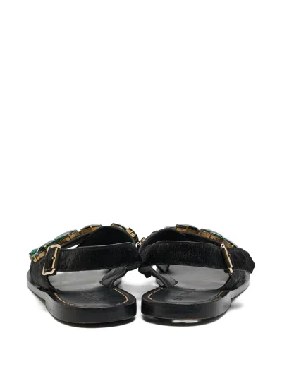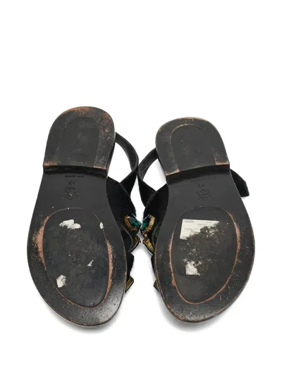 Pre-owned Crystal-embellished Sandals In Black