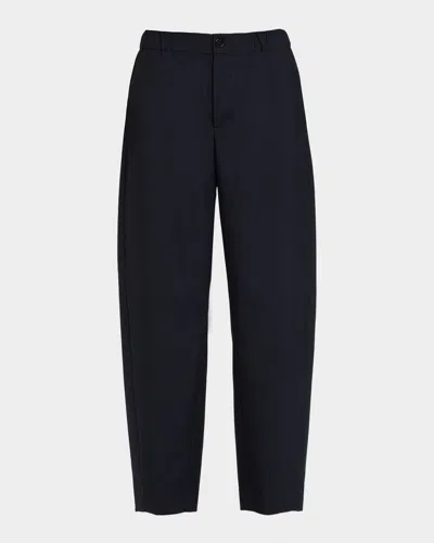 Marni trousers with an elasticized waistband Mid rise sits high on hip Angled side slip pockets Back welt pockets Straight legs Full length Button/zip fly Virgin wool Lining: Viscose Dry clean Made in Italy