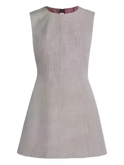 grey houndstooth pattern sleeveless rear zip fastening flared hem thigh length wool