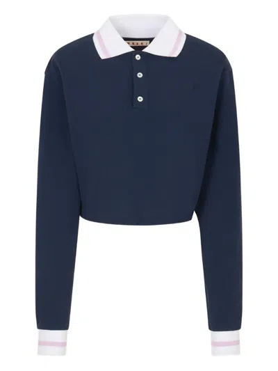 MARNI Long-sleeve Striped-trim Polo Shirt In Blue