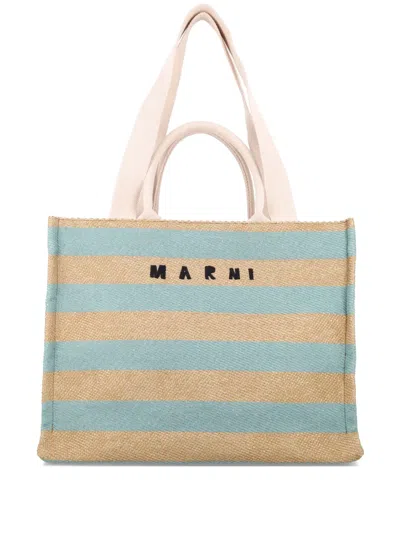 Raffia-effect Medium Tote Bag By Marni. Featuring: Two Set Of Top Handles Embroidered Marni Logo On The Front Stripes Pattern Inner Zip Pocket Cotton Lining Height: 34 Cm Width: 43 Cm Depth: 19 Cm Composition: 45% cotton, 26% linen, 21% polyamide-nylon, 5% polyester, 3% other fibers