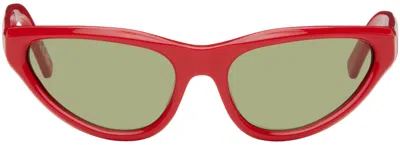 Handcrafted cat-eye acetate-frame sunglasses in red. · Green lenses · Integrated nose pads · Logo engraved at temples · Pouch included · Size: 60.19 135 Supplier color: Solid red