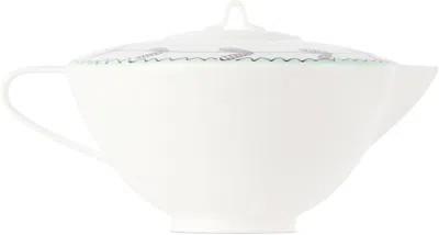 Glazed porcelain tea pot in white. · Hand-painted floral pattern in green, blue, and pink · Logo printed at base · Dishwasher safe · H11 x W16 x D20.5 cm / 85 cL Part of the Marni x Serax collaboration. Supplier color: Blossom milk midnight flowers