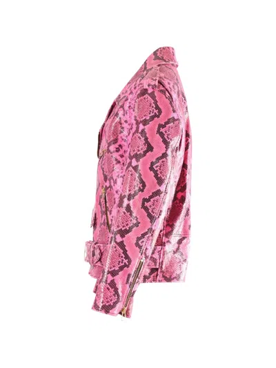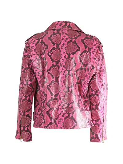 Pre-owned Python-print Belted Biker Jacket In Pink