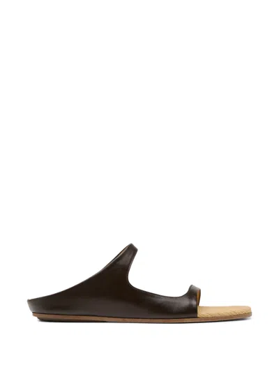 dark brown woven footbed double strap slip-on style open toe