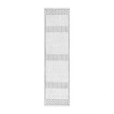 MARTHA STEWART Ethel Bordered Washable 26" X 96" Indoor Rectangular Runner" In Gray