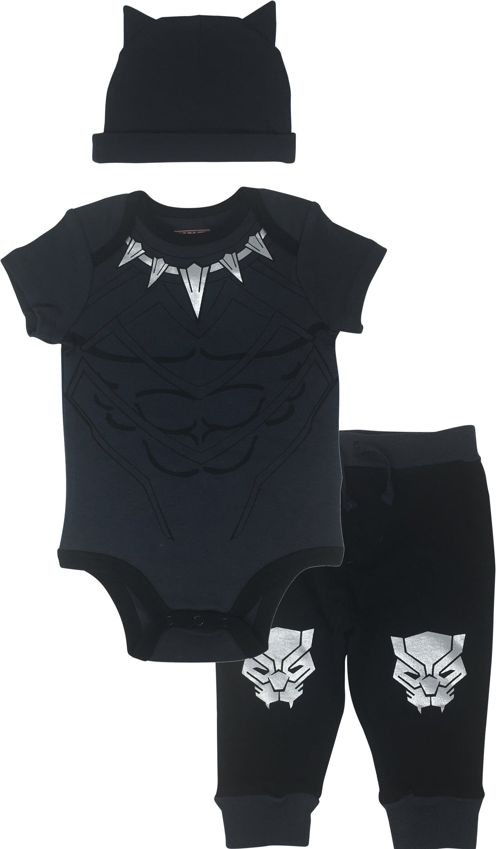MARVEL Babies' Avengers Bodysuit Pants & Hat Layette Set In Black