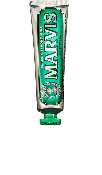Marvis Classic Strong Mint in Beauty: NA. Marvis Classic Strong Mint in Beauty: NA. Modernizing the way we think about toothpaste, Marvis combines an extraordinary formula with decadent flavors created by offsetting the unmistakable aroma of mint with innovative notes for a long-lasting, pleasurable taste sensation. The Marvis Formula is based on a traditional processing method that guarantees a dense, compact, luxurious texture while offering maximum protection against tooth decay, tartar, plaque, and bad breath.. Classic Strong Mint - intense piperita mint. Freshens breath while providing a whitening effect. Vegan, paraben-free, phthalate-free, gluten-free, fluoride-free, and cruelty-free. 3.8 fl oz. Brush thoroughly at least twice per day and after meals, or as directed by a dentist. MVIS-WU3. 411080. Marvis revolutionized the concept of toothpaste. Straight from Florence, Marvis is a superior dental brand beloved in Italy for generations. Marvis changed the story, transforming an everyday ritual into something remarkable, unexpected, and blissful. Marvis flavors are created by offsetting the aroma of mint, to provide the freshness you need with innovative notes to offer you a long-lasting, pleasurable taste sensation that can be different every day. The Marvis formula: white, protected teeth, long-lasting fresh breath and aid in preventing tooth decay, tartar and plaque. Paraben-free. Phthalate-free. Gluten-free. Cruelty-free. Vegan.