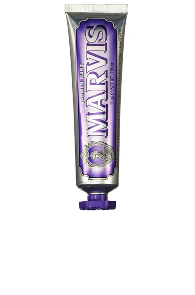 Marvis Jasmin Mint in Beauty: NA. Marvis Jasmin Mint in Beauty: NA. Modernizing the way we think about toothpaste, Marvis combines an extraordinary formula with decadent flavors created by offsetting the unmistakable aroma of mint with innovative notes for a long-lasting, pleasurable taste sensation. The Marvis Formula is based on a traditional processing method that guarantees a dense, compact, luxurious texture while offering maximum protection against tooth decay, tartar, plaque, and bad breath.. Jasmin Mint - jasmine's sweet, lightly floral notes meet mint's fresh coolness. Freshens breath while providing a whitening effect. Vegan, paraben-free, phthalate-free, gluten-free, fluoride-free, and cruelty-free. 3.8 fl oz. Brush thoroughly at least twice per day and after meals, or as directed by a dentist. MVIS-WU8. 411085. Marvis revolutionized the concept of toothpaste. Straight from Florence, Marvis is a superior dental brand beloved in Italy for generations. Marvis changed the story, transforming an everyday ritual into something remarkable, unexpected, and blissful. Marvis flavors are created by offsetting the aroma of mint, to provide the freshness you need with innovative notes to offer you a long-lasting, pleasurable taste sensation that can be different every day. The Marvis formula: white, protected teeth, long-lasting fresh breath and aid in preventing tooth decay, tartar and plaque. Paraben-free. Phthalate-free. Gluten-free. Cruelty-free. Vegan.