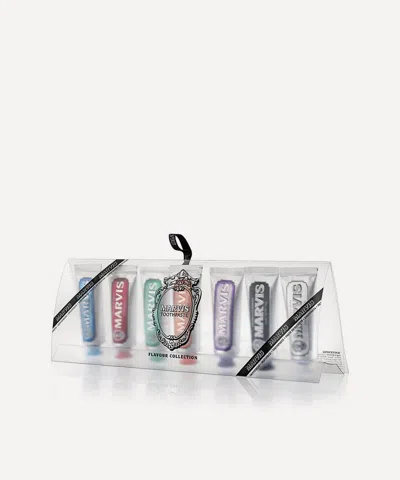 Elevate your daily ritual with the Marvis 7-flavor collection featuring seven 25ml toothpaste tubes with fine, extravagant flavours, perfect for gifting and for those who savor life's unique pleasures. With flavours like aquatic mint, jasmine mint, cinnamon mint, and amarillo liquorice, each toothpaste is a gift in its own right, promising a sweet indulgence for a brilliant, fresh smile.