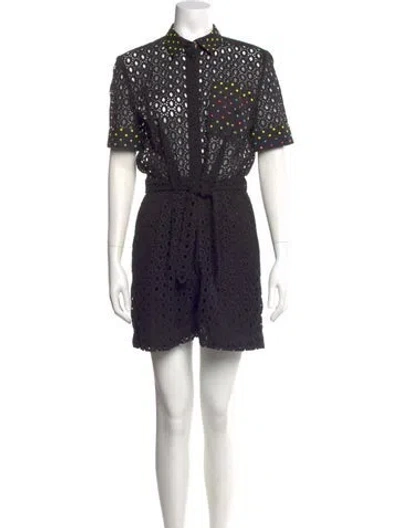 Mary Katrantzou Romper Black Lace Pattern Crochet Trim Short Sleeve with Collar Button Closure at Front Fit: Jumpsuits and Rompers by Mary Katrantzou typically fit true to size. | Mary Katrantzou Lace Pattern Romper in Black, Women's US2, UK6 | XS