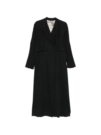 black double-breasted button fastening notched lapels long sleeves textured finish
