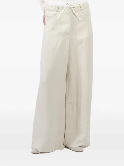 MASNADA Drawstring Frayed Palazzo Pants In Neutral
