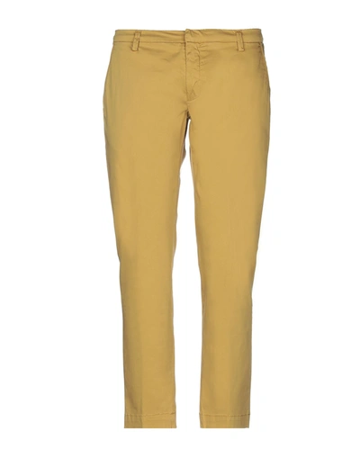 plain weave, logo, leather applications, basic solid color, low waisted, regular fit, tapered leg, hook-and-bar, zip, multipockets, contains non-textile parts of animal origin, stretch, chinos , Color: Ocher , Size: 35