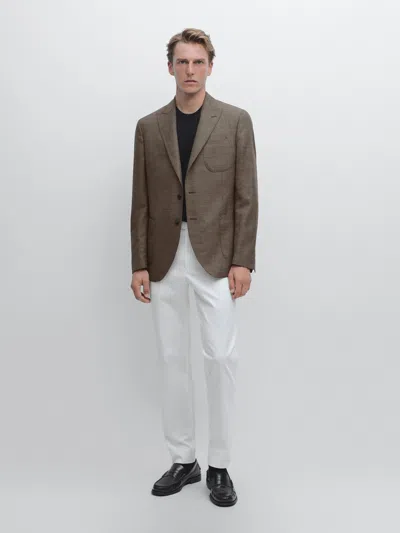 MASSIMO DUTTI 100% Wool Textured Blazer In Brown
