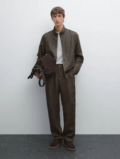 MASSIMO DUTTI Faded Total Look Linen Bomber Jacket In Multi
