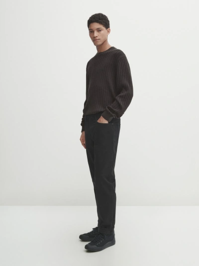 MASSIMO DUTTI Gerippter Strickpullover Aus Baumwollmischgewebe In Grau