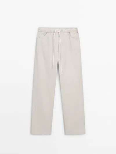 MASSIMO DUTTI Jogger Fit Poplin Trousers With Drawstrings In Stone