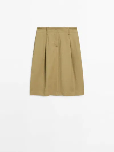 MASSIMO DUTTI Midi Skirt With Dart Details In Camel