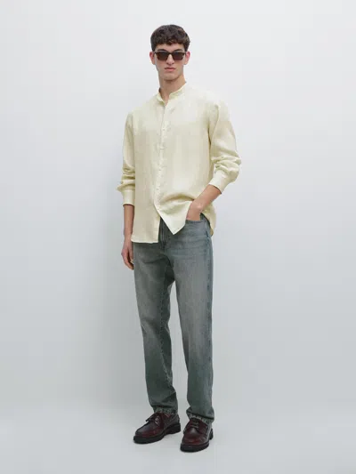 Stand-up collar. Slim Fit shirt: this fit features a slightly fitted silhouette, snug in the torso, shoulders and arms, providing a more defined and slimming appearance. Button-up front. Long sleeves with buttoned cuffs. Made of 100% linen