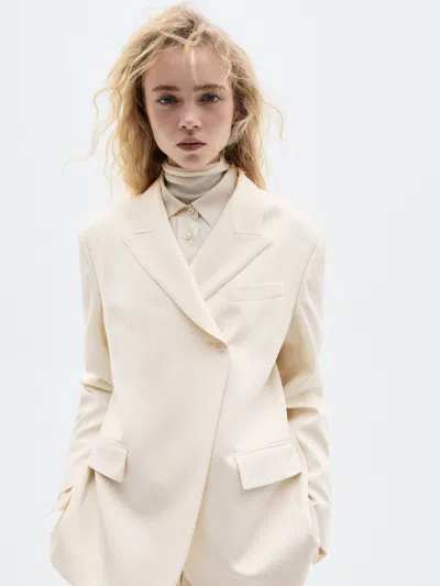MASSIMO DUTTI Wool Blend Crossover Blazer In White