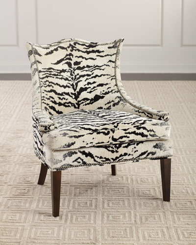 EXCLUSIVELY OURS. Handcrafted chair with nail head trim. Hardwood frame. Upholstery: viscose/polyester/linen/cotton. Stapled and glued, mortise and tenon frame. Suspended coil spring system. Overall: 31"W x 32"D x 38"T. Dry clean. Arm height, 21". Seat: 22"D x 19"T. Made in the USA. Boxed weight, approximately 55 lbs.