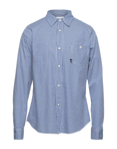 plain weave, brand logo, checked, classic neckline, long sleeves, button closing, single chest pocket, small sized , Color: Midnight blue , Size: 16