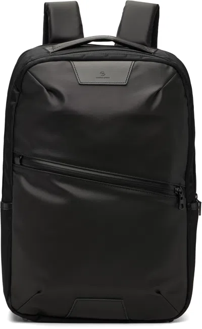 Water-repellent satin and nylon twill backpack. · Buffed leather trim throughout · Carry handle at top · Padded zip laptop compartment · Adjustable padded shoulder straps · Zip pocket and embossed logo at face · Patch pocket at sides · Zip pocket and luggage strap at back face · Bumper studs at base · Two-way zip closure · Patch pocket and mesh zip pocket at interior · Canvas lining · H16.5 x W11 x D5.5 Supplier color: Black