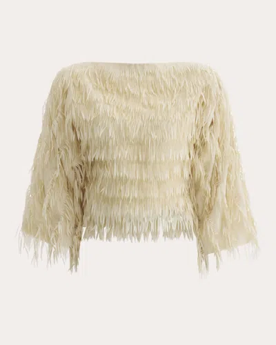 Playfully dimensional, Maticevski's Dazzle top embraces a bohemian aesthetic with layers of neutral-hued fringe. The boatneck collar is framed with oversized three quarter-length sleeves. Please note, this pre-order item is expected to deliver between June 1-30, 2026. Designer color: white Side-zip closure Exaggerated three-quarter sleeves Draped bodice Cropped hem Fringe embellishments Self: 100% polyester Lining: 93% silk, 7% polyester Dry clean only Made in Australia Size & Fit Fits true to size Please note, below measurements reflect Maticevski's size chart, not the actual garment. Size AU 6 / US 2: 32-33in bust, 24-25in waist, 36-37in hips Size AU 8 / US 4: 34-35in bust, 26-27in waist, 38-39in hips Size AU 10 / US 6: 36-37in bust, 28-29in waist, 40-41in hips Size AU 12 / US 8: 37-38in bust, 30-31in waist, 42-43in hips Size AU 14 / US 10: 39-40in bust, 32-33in waist, 44-45in hips Size AU 16 / US 12: 41-42in bust, 34-36in waist, 46-47in hips Maticevski Women's Dazzle Fringe Draped Boatneck Top in Neutral Polyester/Silk