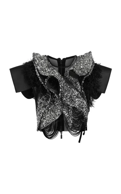 Maticevski - Routine Sequined Crop Top - Black - AU 6 - Only At Moda Operandi