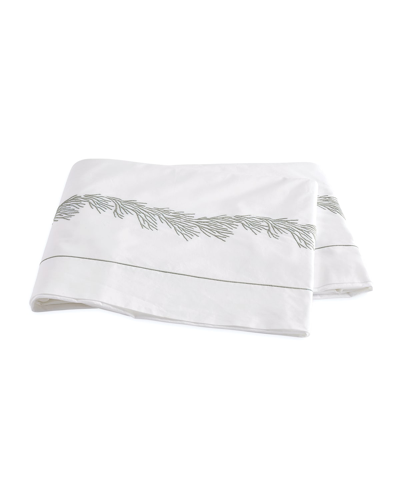 Flat sheet in 520 thread-count cotton percale features feathery embroidery, inspired by Pacific Ocean coral. Finished with a small satin stitch border. 112" x 112". Machine wash. Made in USA of imported material.