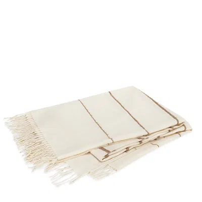 Matouk Amelia Boucle Stripe Alpaca Throw.Color:Parchment.Material:100% baby alpaca wool.