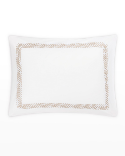 Embroidered on our crisp 520 thread count Ceylon percale, Astor Braid is a style with a quintessential appeal. The bold design from Schumacher's celebrated collection of tapes and trims is a timeless script, suited for pairing with an array of patterns Two heritage companies synonymous with beauty and quality come together in an exciting collaboration. The Matouk Schumacher collection combines Matouk's impeccably crafted linens with Schumacher's extraordinary prints, for beautiful beddi.