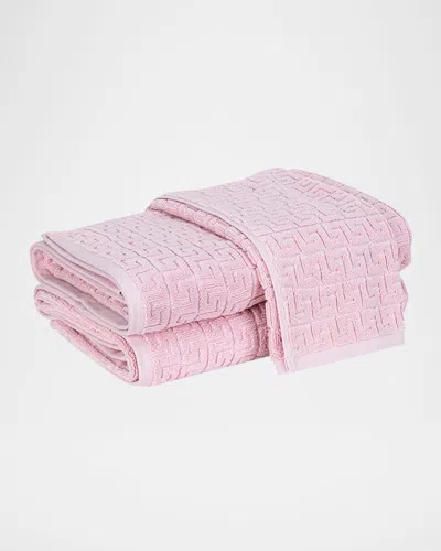 This sculpted towel style with a Greek key motif is based on a Schumacher fabric and adds an air of subtle elegance to any bathroom. It has a graceful, midweight feel to it and comes in a series of sublime hues. Crafted of 600 gsm cotton Approx. 40" x 70" Machine wash warm, tumble dry medium Do not use bleach or fabric softener Made in Portugal