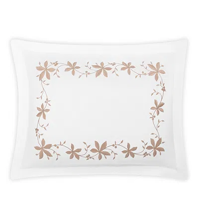 Adorned with a dancing frame of floral vines, Callista is the first decorative embroidery on the silky 500 thread count Bergamo Giza Egyptian cotton percale. With six colors to choose from, Callista adds a pop of character to any room and pairs beautifully with the whimsical Dominique print.