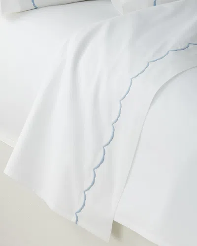 MATOUK King Scallops Embroidered 350 Thread Count Flat Sheet In White/blue
