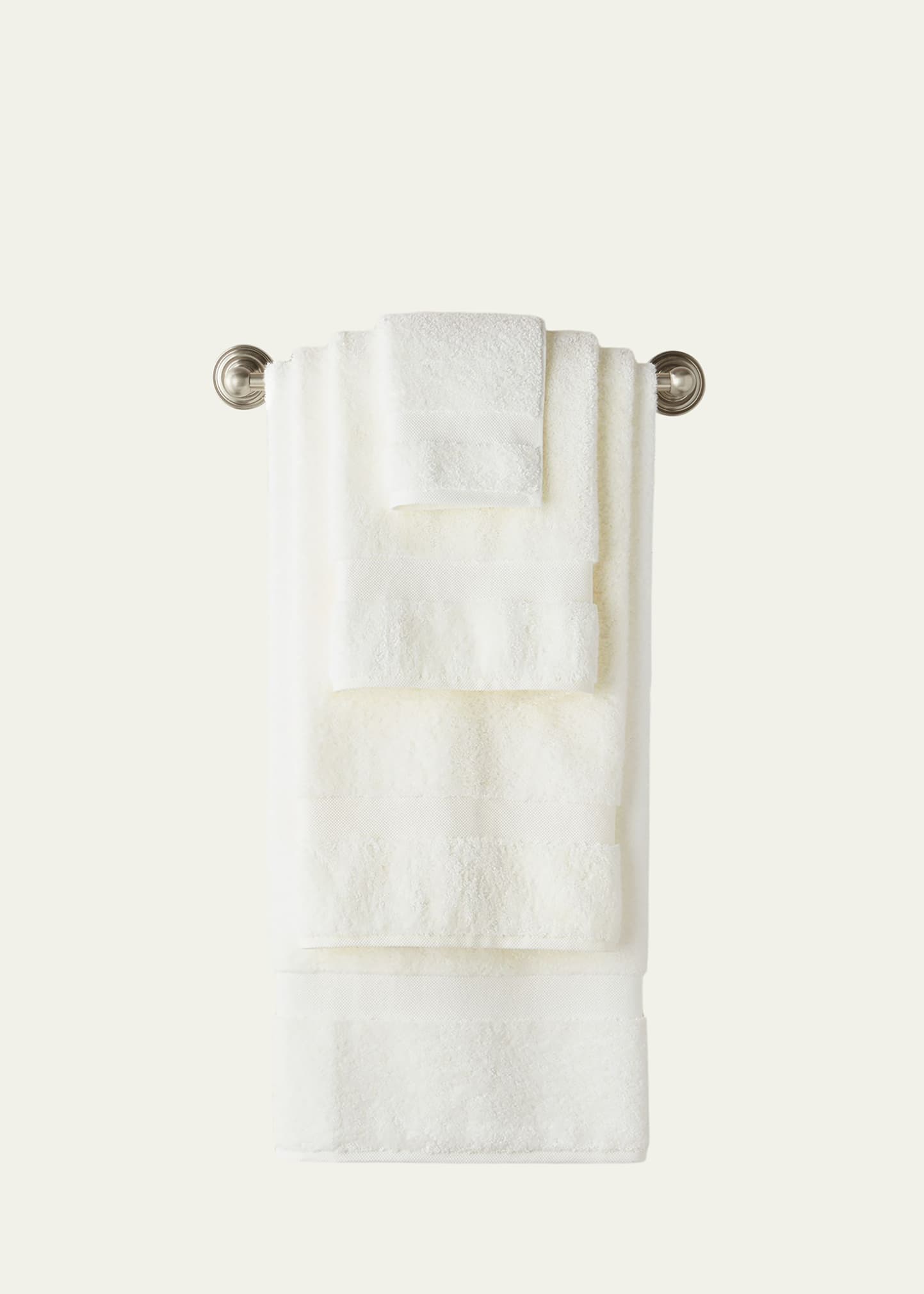 Thick and soft, Pima cotton with dobby border. 700 GSM luxury weight. 40" x 70". Machine wash. Made in Portugal.