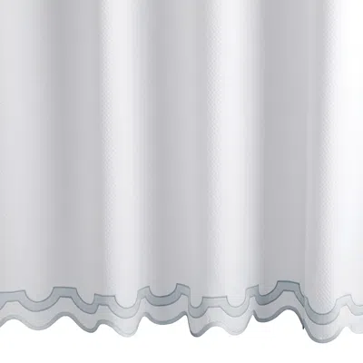 The Mirasol Shower Curtain features a stunning applique border of Nocturne sateen on Matouk's Diamond Pique and is finished with a scallop piping, giving it a perfect touch of glamour.