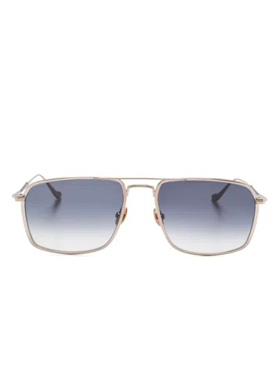 gold-tone UV-protective lenses nose pads curved tips These glasses come with a protective case.