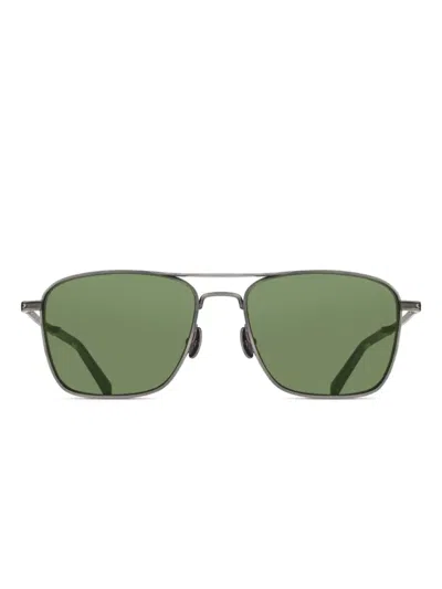 silver-tone nose pads double bridge square frame straight arms These glasses come with a protective case.