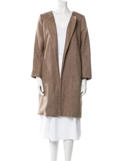 Matta Wool Coat Brown Pointed Collar Knee-Length Slit Pockets & Open Front Fit: Coats by Matta typically fit true to size. | Matta Wool Coat in Brown, Women's M