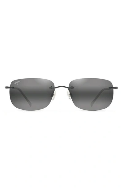 MAUI JIM Ohai 59.5mm Polarized Rimless Rectangular Sunglasses In Black Gloss/ Neutral Grey